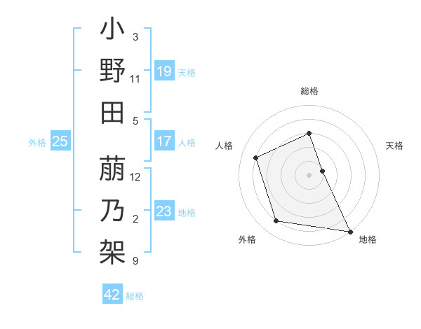 小野田 萠乃架さんの外格は25画の4点!