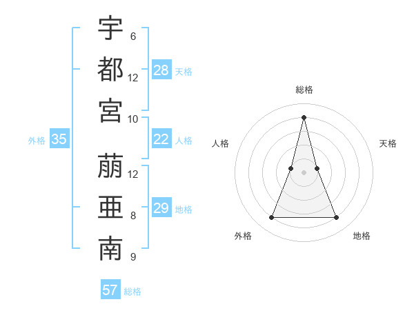 宇都宮 萠亜南さんを姓名の画数から五運を鑑定