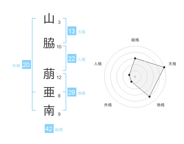 山脇 萠亜南さんを姓名の画数から五運を鑑定