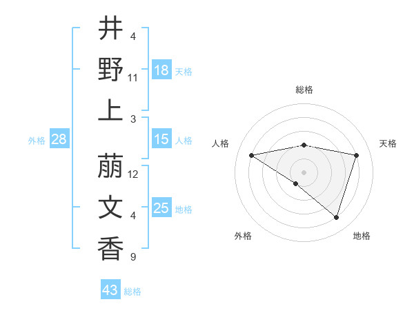 井野上 萠文香さんを姓名の画数から五運を鑑定