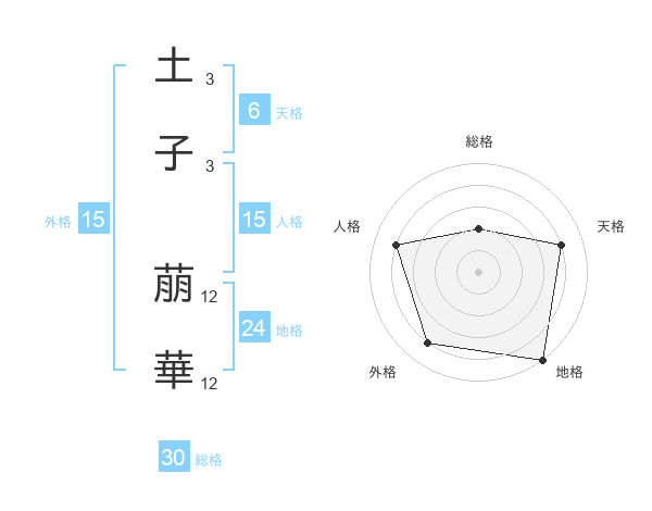 土子 萠華さんの総格は30画の2点!