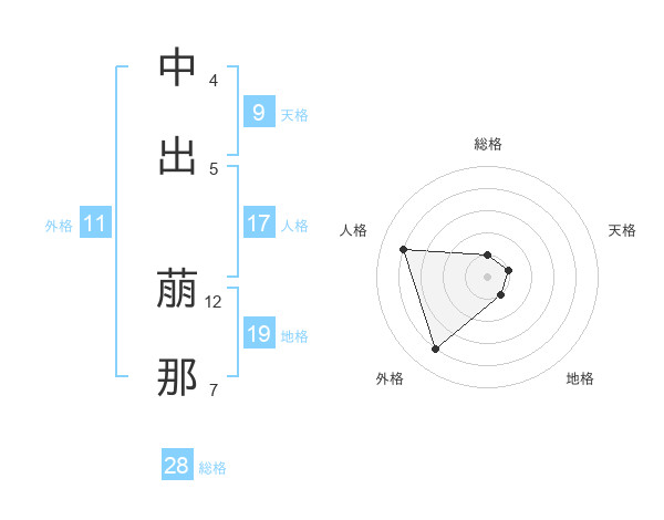 中出 萠那さんの総格は28画の1点!