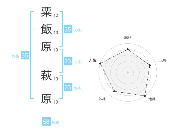 粟飯原 萩原さんの地格は23画の5点!