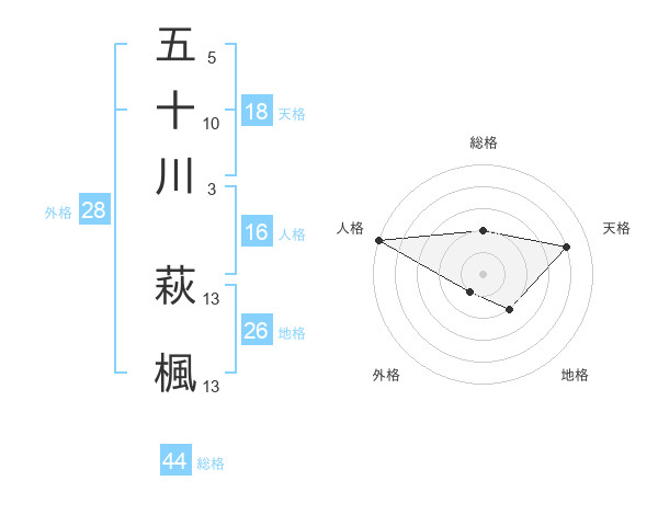 五十川 萩楓さんを姓名の画数から五運を鑑定