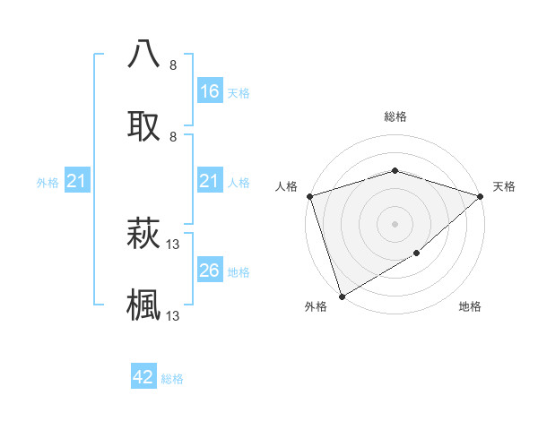 八取 萩楓さんを姓名の画数から五運を鑑定