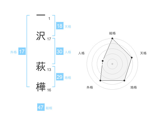 一沢 萩樺さんの総格は47画の5点!