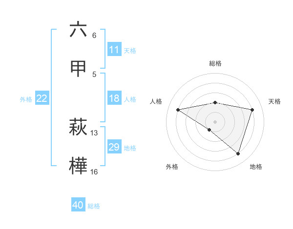 六甲 萩樺さんの外格は22画の1点!