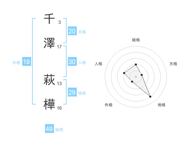 千澤 萩樺さんを姓名の画数から五運を鑑定