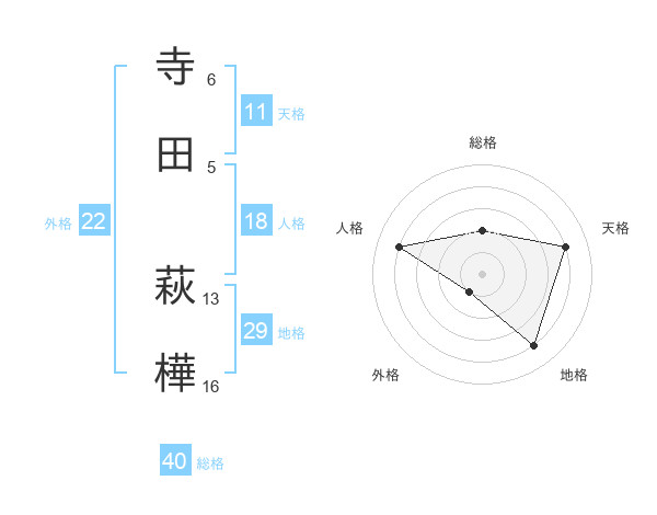 寺田 萩樺さんの外格は22画の1点!