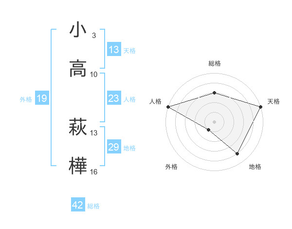 小高 萩樺さんの天格は13画の5点!