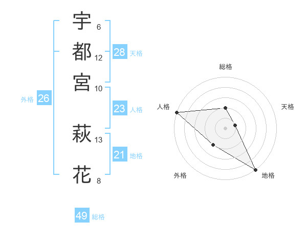 宇都宮 萩花さんを姓名の画数から五運を鑑定