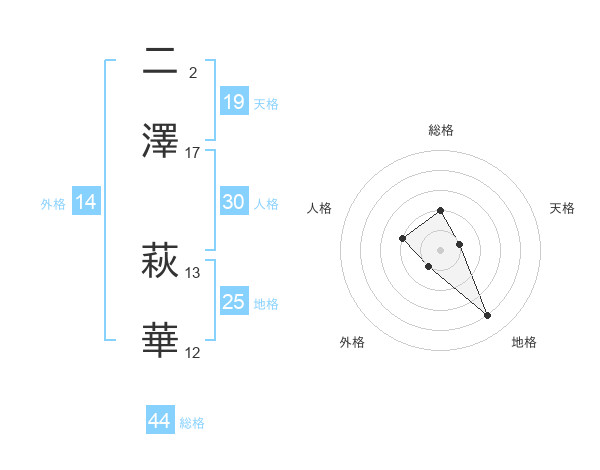 二澤 萩華さんの総格は44画の2点!