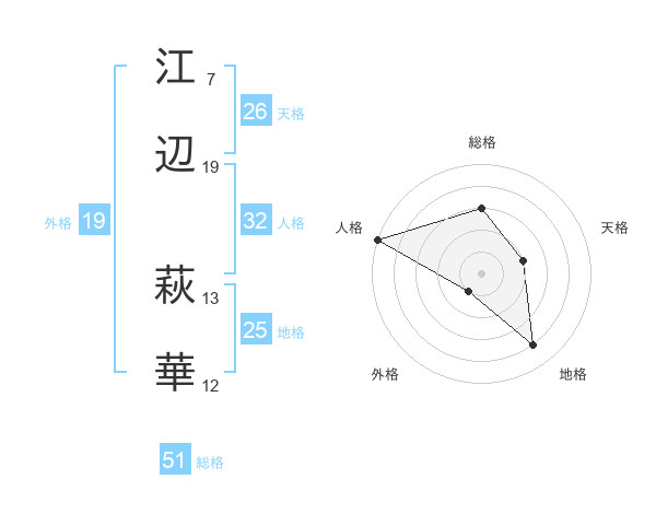 江辺 萩華さんの総格は51画の3点!