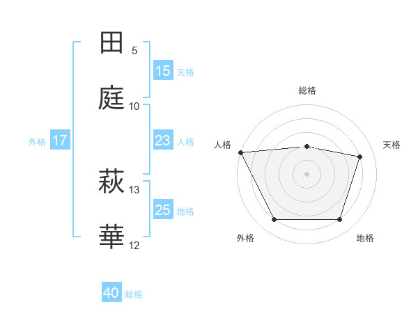 田庭 萩華さんを姓名の画数から五運を鑑定