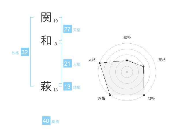 関和 萩さんの外格は32画の5点!