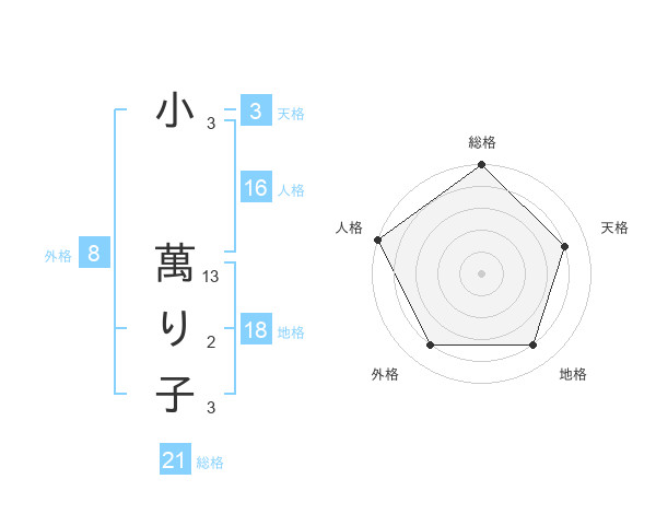 小 萬り子さんの総格は21画の5点!