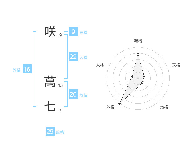 咲 萬七さんの総格は29画の4点!
