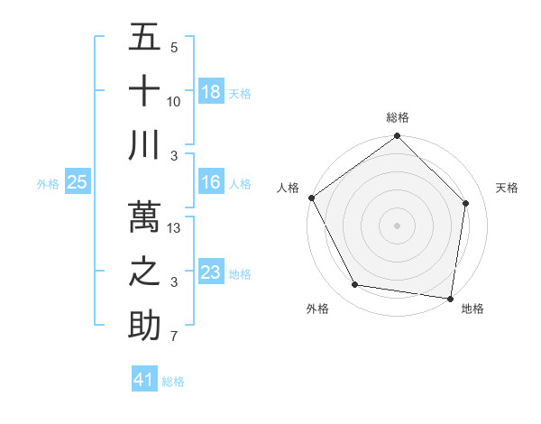 五十川 萬之助さんの総格は41画の5点!