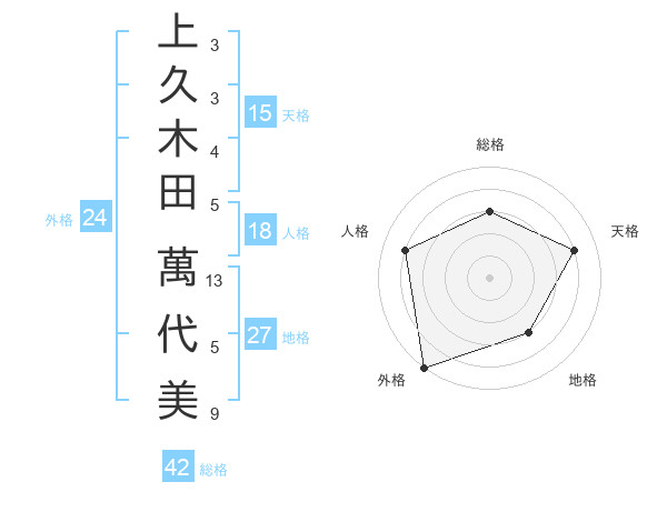 上久木田 萬代美さんの外格は24画の5点!