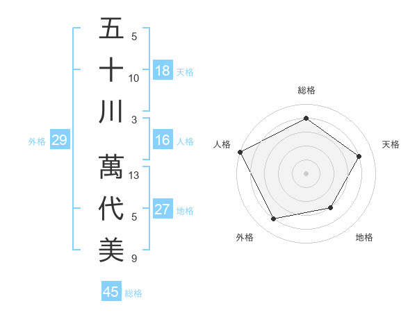 五十川 萬代美さんを姓名の画数から五運を鑑定