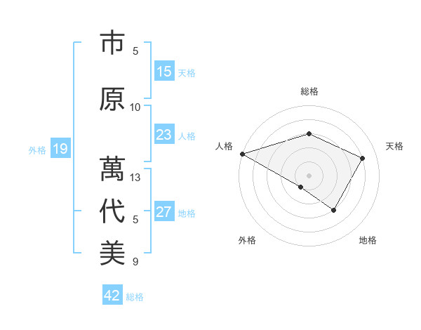 市原 萬代美さんを姓名の画数から五運を鑑定