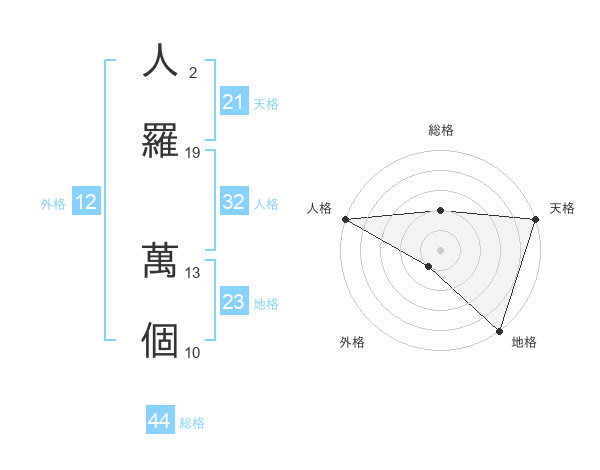 人羅 萬個さんの地格は23画の5点!