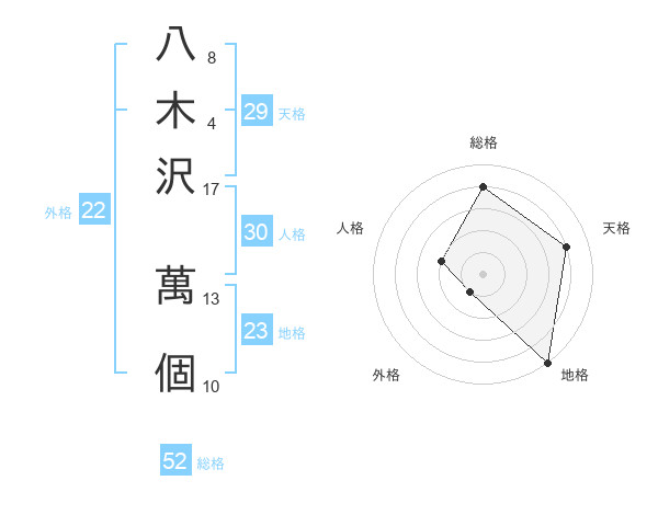 八木沢 萬個さんの総格は52画の4点!