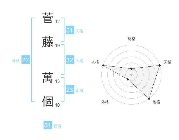 菅藤 萬個さんの天格は31画の5点!