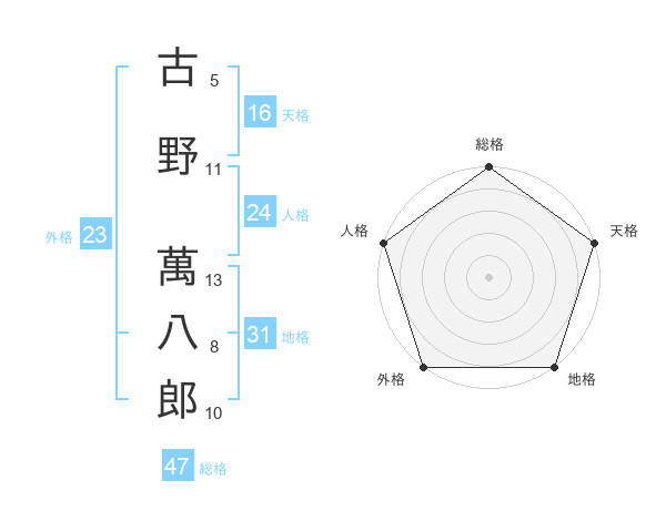 古野 萬八郎さんを姓名の画数から五運を鑑定