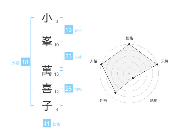 小峯 萬喜子さんの天格は13画の5点!