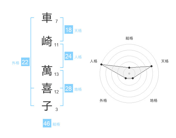 車崎 萬喜子さんを姓名の画数から五運を鑑定