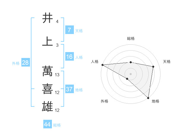 井上 萬喜雄さんの地格は37画の5点!