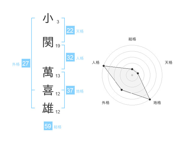 小関 萬喜雄さんを姓名の画数から五運を鑑定