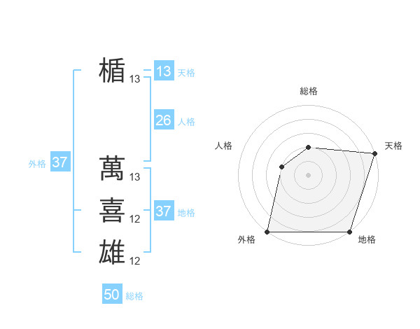 楯 萬喜雄さんの外格は37画の5点!