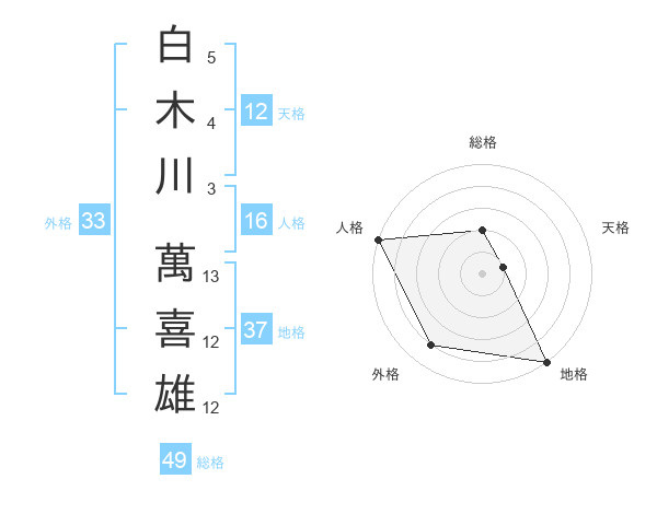 白木川 萬喜雄さんを姓名の画数から五運を鑑定