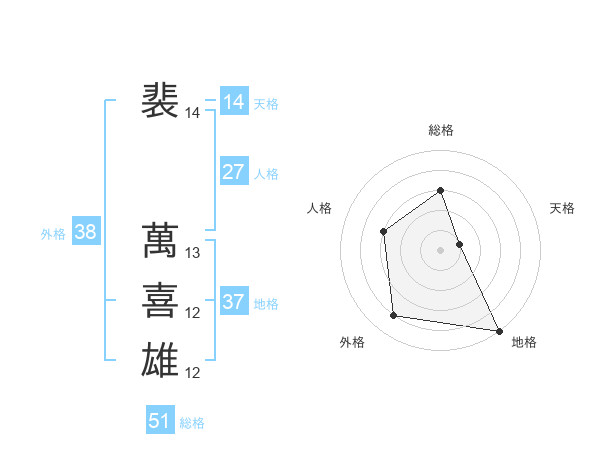 裴 萬喜雄さんを姓名の画数から五運を鑑定