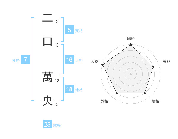 二口 萬央さんの総格は23画の5点!
