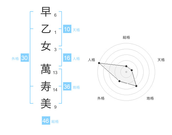 早乙女 萬寿美さんの総格は46画の1点!