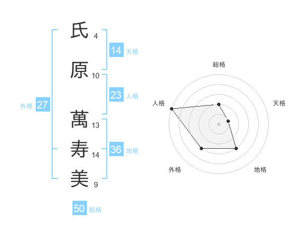 氏原 萬寿美さんを姓名の画数から五運を鑑定