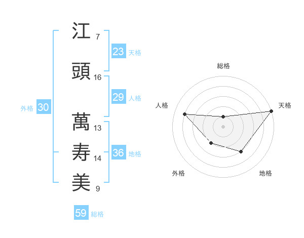 江頭 萬寿美さんの総格は59画の1点!