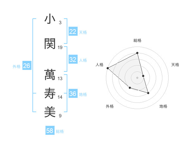 小関 萬寿美さんを姓名の画数から五運を鑑定
