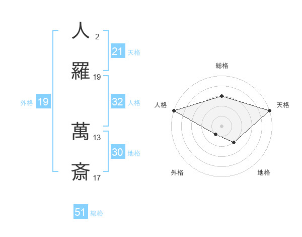 人羅 萬斎さんの総格は51画の3点!