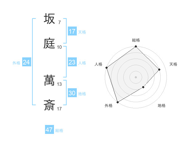 坂庭 萬斎さんを姓名の画数から五運を鑑定