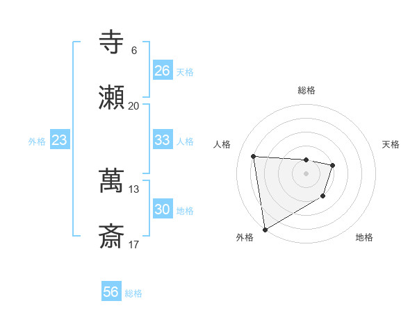 寺瀬 萬斎さんの地格は30画の2点!