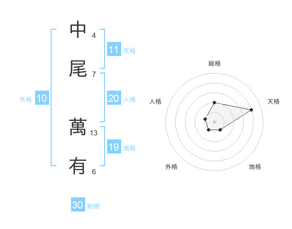 中尾 萬有さんを姓名の画数から五運を鑑定