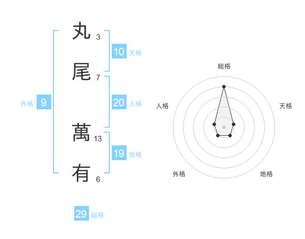 丸尾 萬有さんを姓名の画数から五運を鑑定