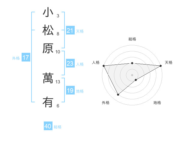 小松原 萬有さんを姓名の画数から五運を鑑定