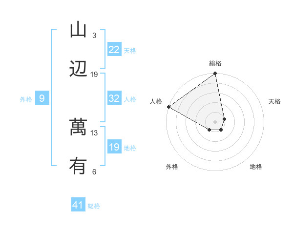 山辺 萬有さんの天格は22画の1点!