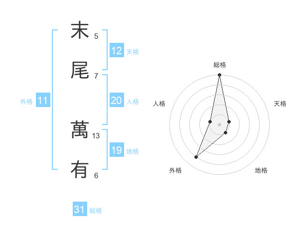 末尾 萬有さんを姓名の画数から五運を鑑定