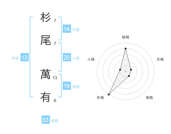 杉尾 萬有さんを姓名の画数から五運を鑑定